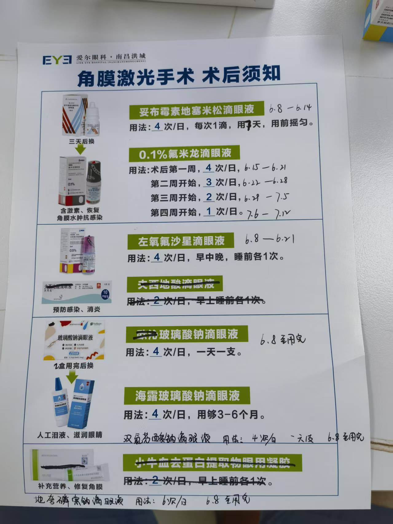 手术结束之后先留院观察,还有叮嘱术后检查,眼部药水的滴入频次,一切正常后五点多钟离院回家。在术后的第二天和一周后的检查情况都一切正常,左眼达到1.2的视力,右眼1.0。比之前手术事项告知书中估计的左眼1.0,右眼0.8的预估结果要好上一些。目前就是在夜间看光圈会有光晕,类似于普通灯变成了霓虹灯,据说之后会有所改善。其实最难坚持的是平均每天大概要滴二十来次五种不同的眼药水,也有一些同学会出现眼睛干涩的问题,目前小喜同学暂时还没有,只记得她为了洗澡眼睛不沾水,用防水贴保护眼睛嫌麻烦,后来干脆直接用食品保鲜袋套头,如果是丝袜,估计会被当做不法分子抓走吧。