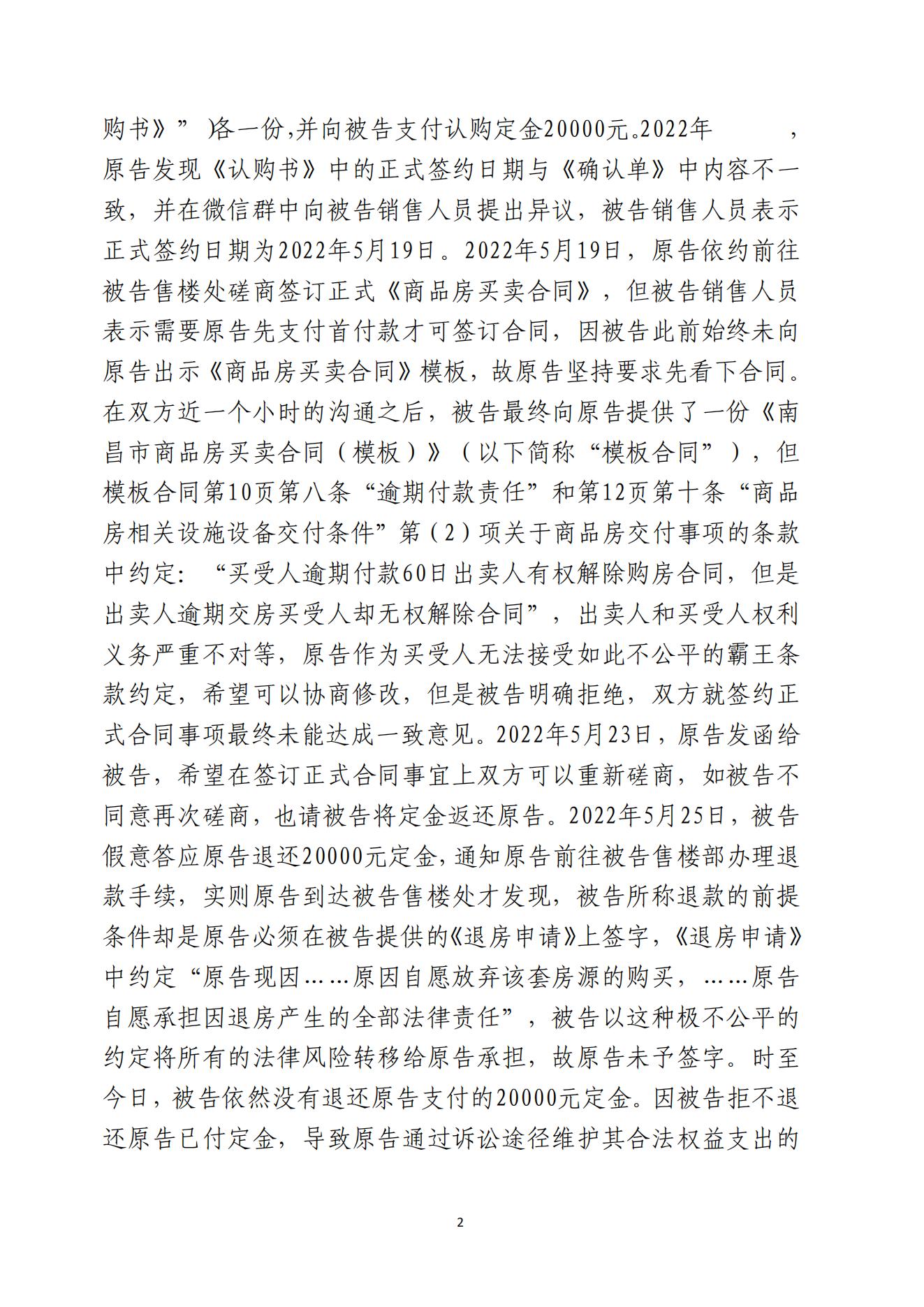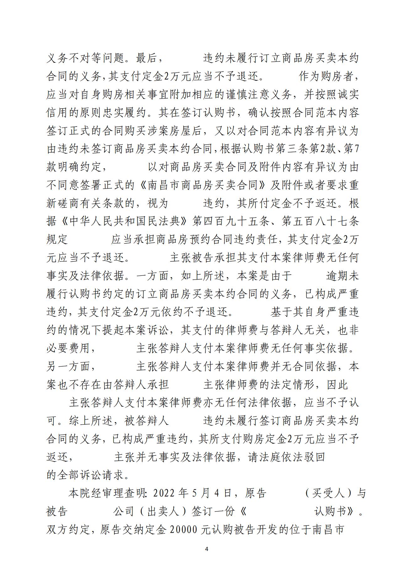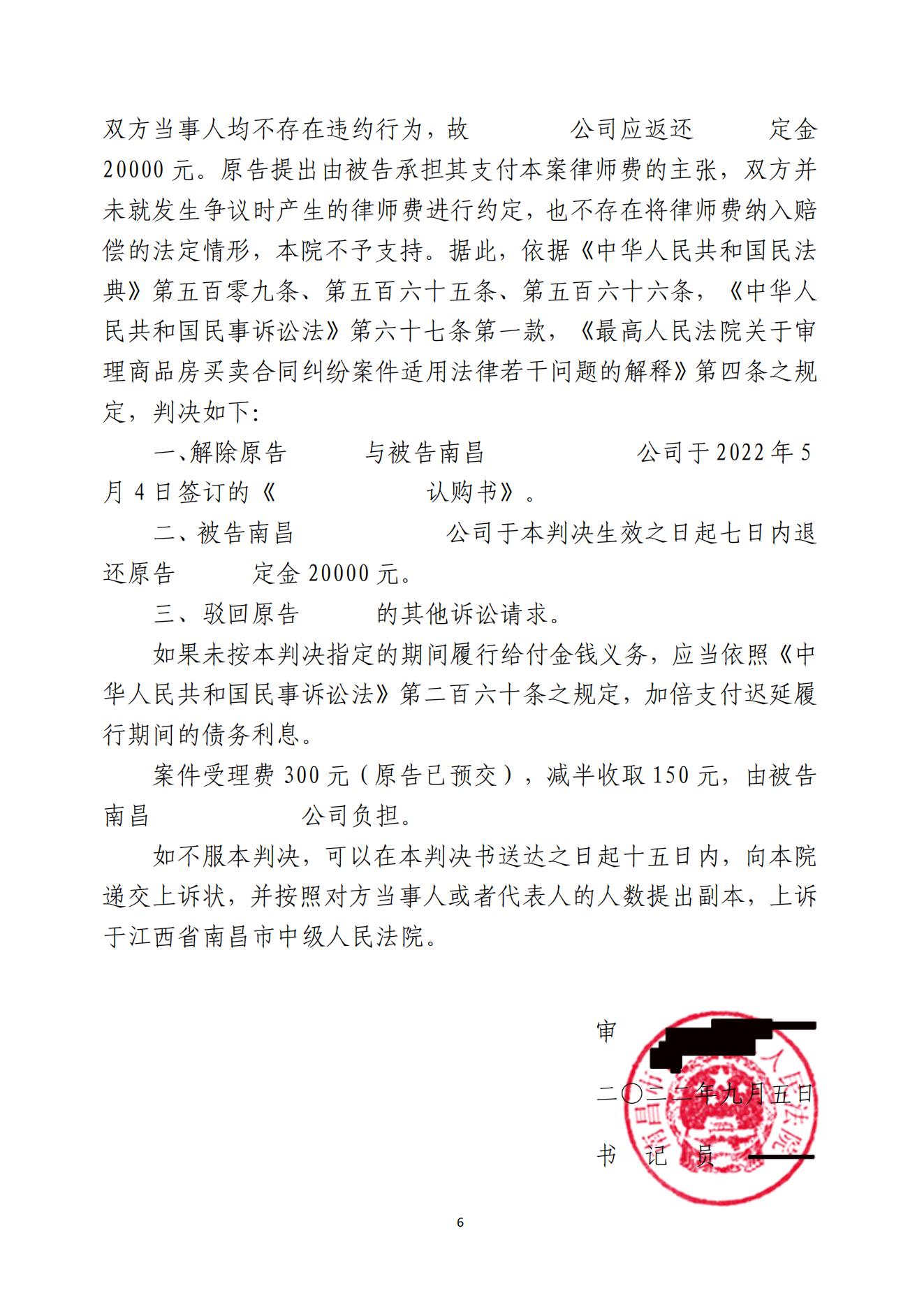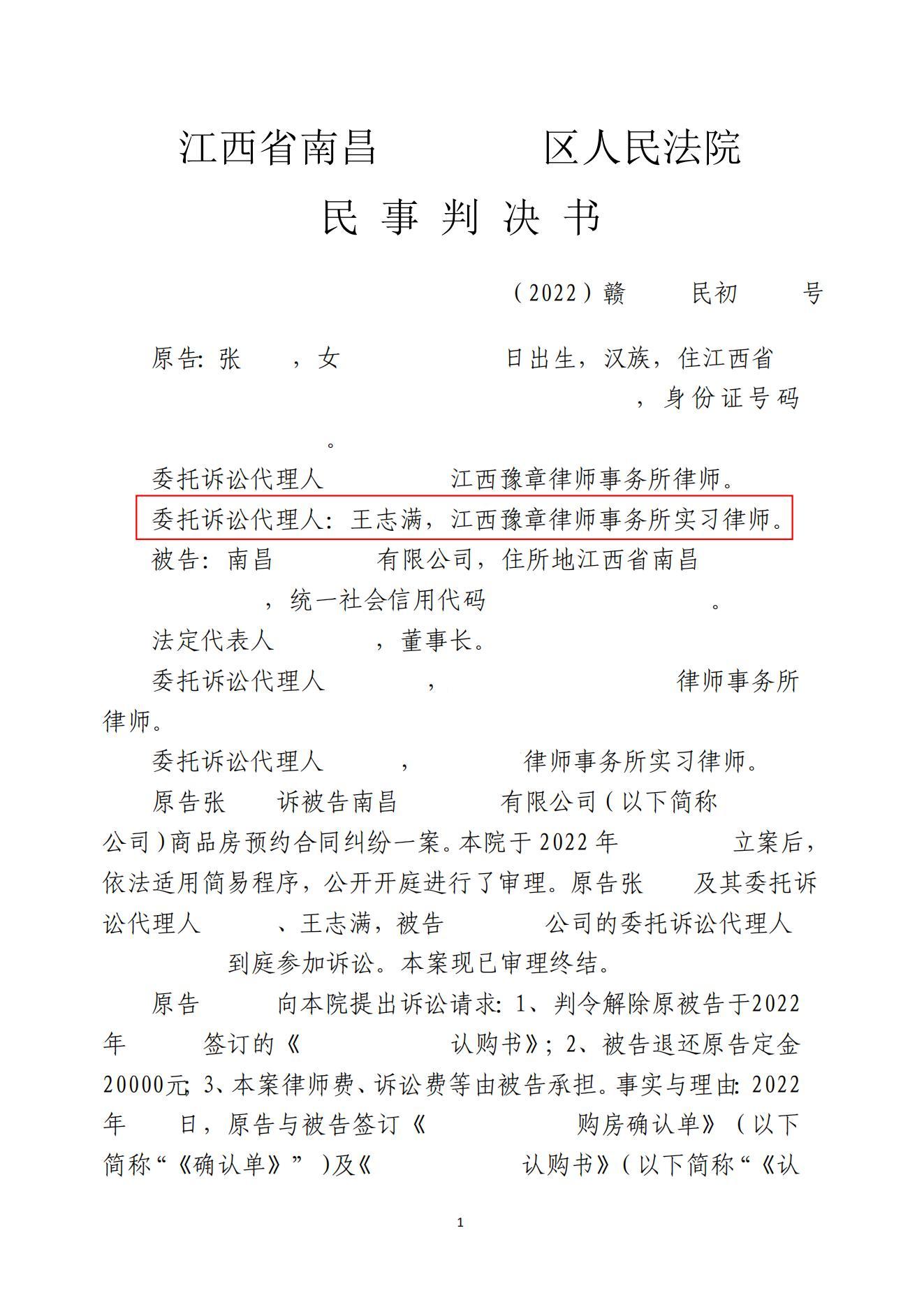 这个案子是我律师实习期间代理的第一个案子,是关于买房方面的纠纷。当时开发商收了购房定金,但因为一些原因双方无法签订正式购房合同,最终开发商也不同意退还定金,开发商的依据为《中华人民共和国民法典》第八章违约责任的相关规定。后来购房者找到我,希望可以让开发商返还定金,我代理这个案子后,经过努力,比较幸运的是,最终成功胜诉。判决书中关于个人及单位等的隐私信息已隐去(经过合法授权的除外),现分享如下,仅供学习交流。