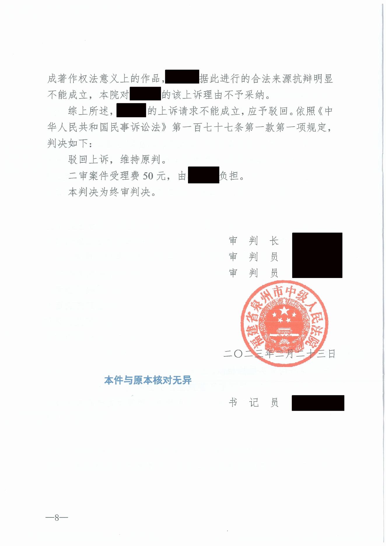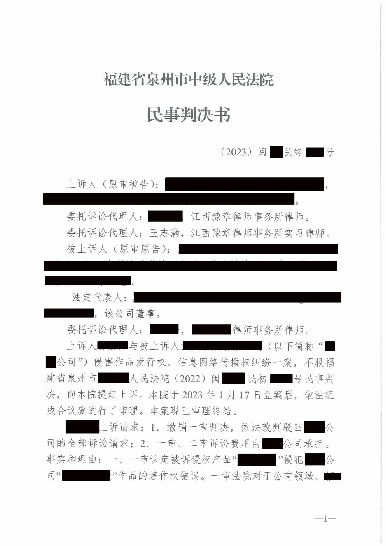 该案是关于淘宝店铺侵犯著作权的知识产权类型案件,该案中我代理的是被告方。该案在一审已判决败诉的情况下,需要提起上诉。有时候即使知道胜诉的概率不大,但依然值得去试一试。我方在上诉过程中充分表达了我方观点,虽然最终还是被二审法院维持一审判决,但是依然达到了我方想要的诉讼的效果。判决书中关于个人及单位等的隐私信息已隐去(经过合法授权的除外),现分享如下,仅供学习交流。