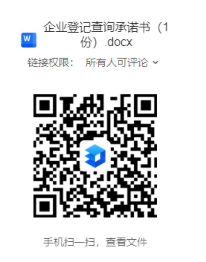 企业登记查询承诺书空白模板下载链接:https://www.kdocs.cn/l/cpBCekOwU1ME
